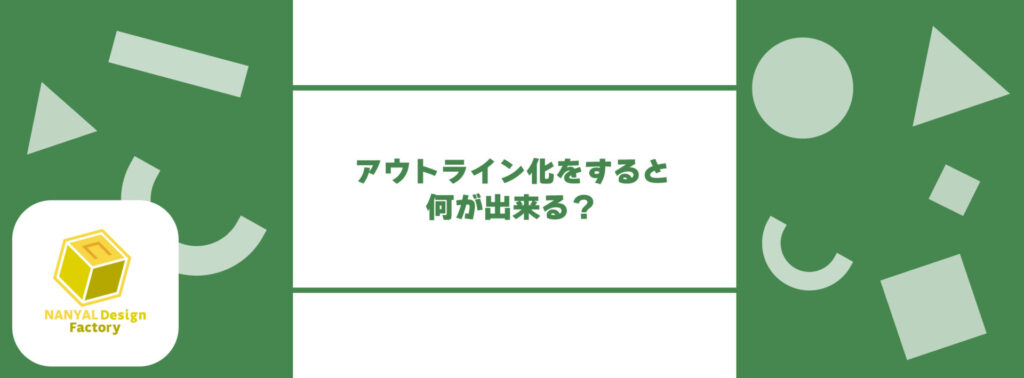 Illustratorなどのデザインソフトでいう「アウトライン化」とは、文字や線などのオブジェクトをパス(図形)データに変換することです。