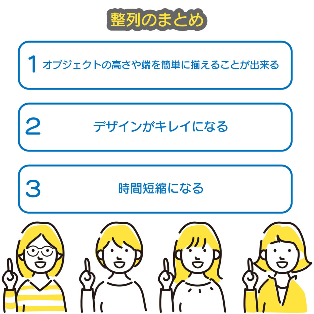 など、整列ツールを使うだけで一瞬で整えることが出来ます。