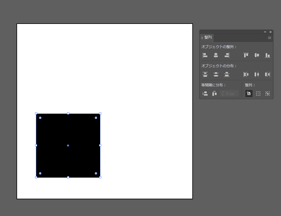 例えばアートボードの中央にオブジェクトを配置したい場合やアートボードの四方にピッタリ配置したい時などに使用します。