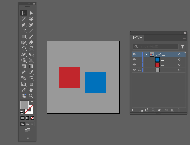 この状態から青の四角を動かさずに、赤の四角を選択したい場合どうしたらよいでしょうか?それは青い四角をロックすることで解決します。