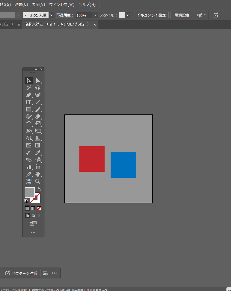 例えば同じ大きさの赤の四角と青の四角があって、それをきれいに重ねます。