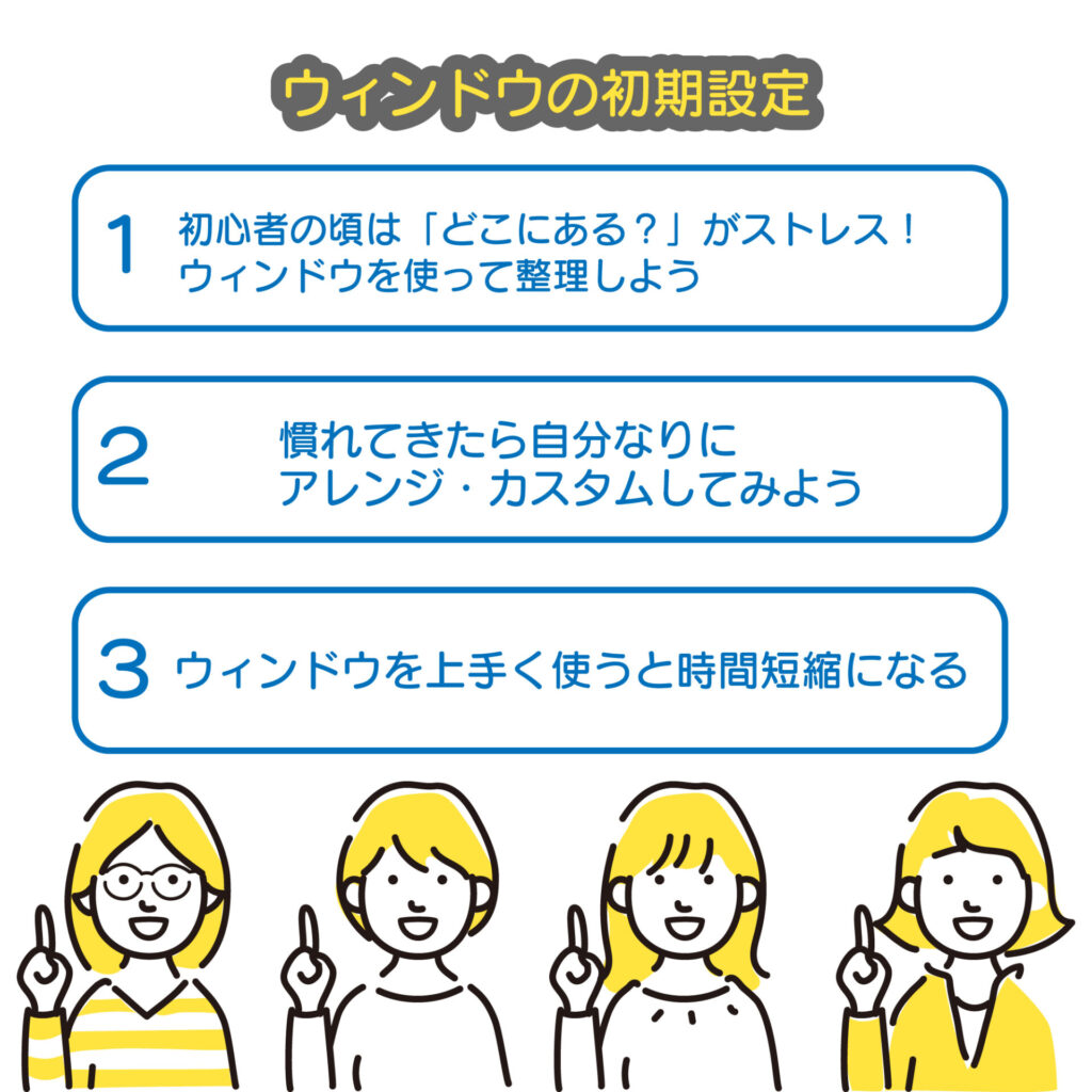 ウィンドウは基本操作がしやすくなり、時短や操作負担を軽減する意味でも設定しておいた方が良いです!